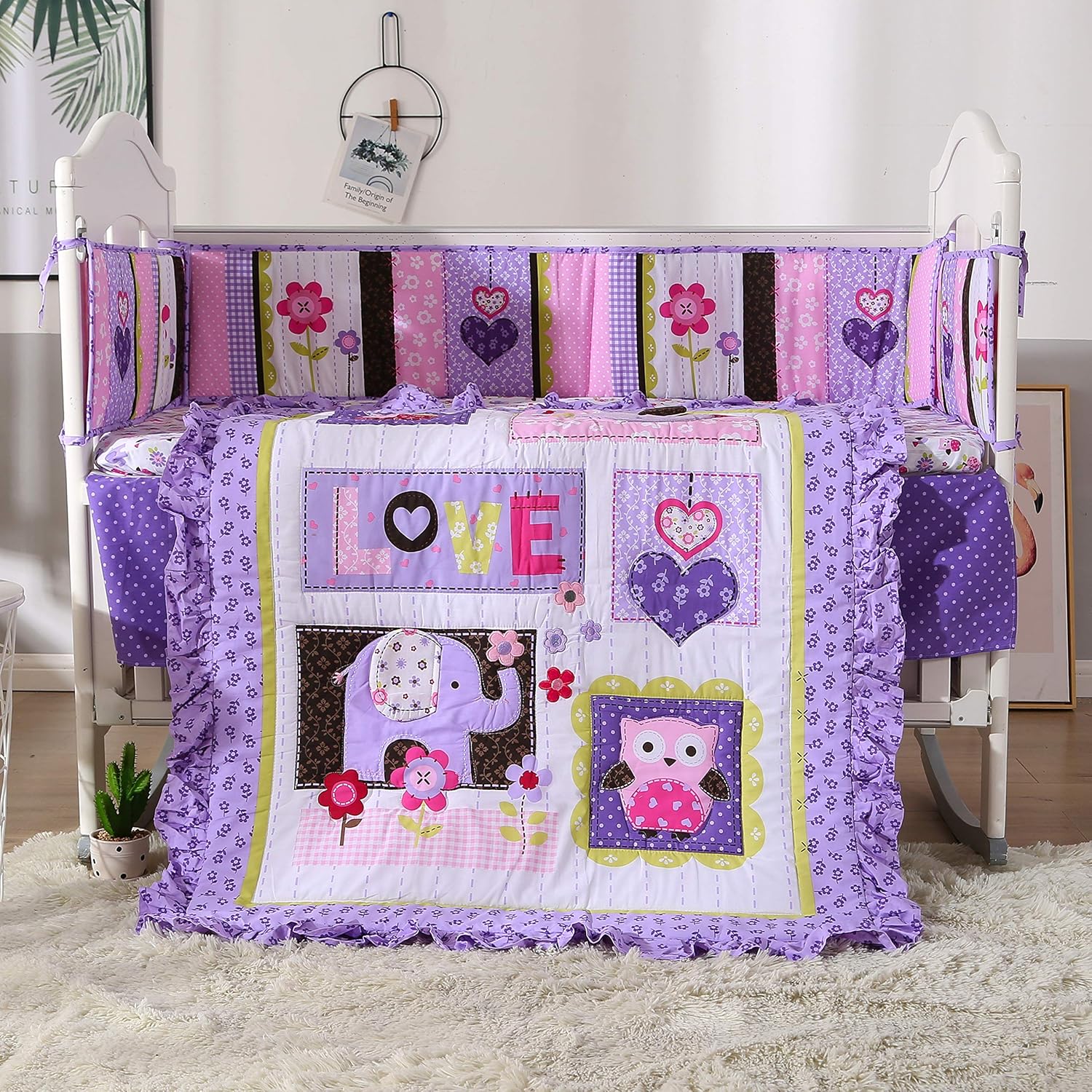 Personalized Baby Girl Blanket Elephant Watercolor Purple Floral Flower Nursery Decor New Baby Shower Gift Crib Bedding Dezignerheart Designs C Personalized Baby Nursery Decor Gifts Canvas Wall Baby bedding set 5pcs packing list: